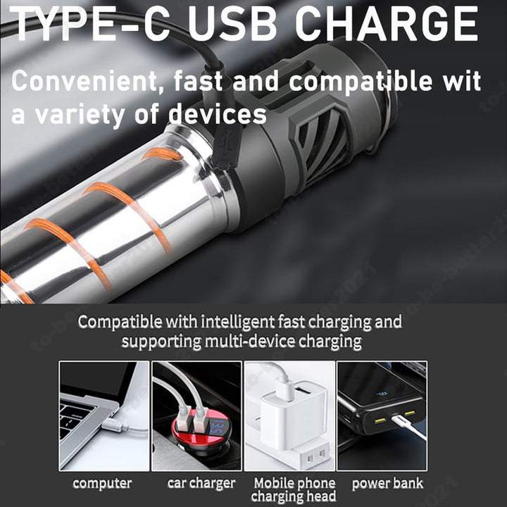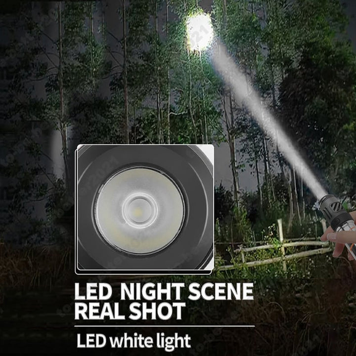 The 2-mode flashlight provides suitable lighting for any situation. 400 lumen at full brightness can continuously last up to 10 hours, or it can be brought down to 50 lumen for 50 hours.