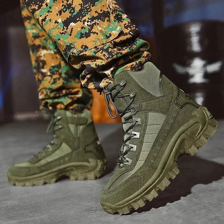 The upper part of the hiking boots is crafted from Tactical Nylon and suede leather, providing high scratch and abrasion resistance. The gusseted tongue prevents pebbles, sand, dirt, and other debris from entering these combat boots. With excellent workmanship, the hiking boots are of very high quality and durability.