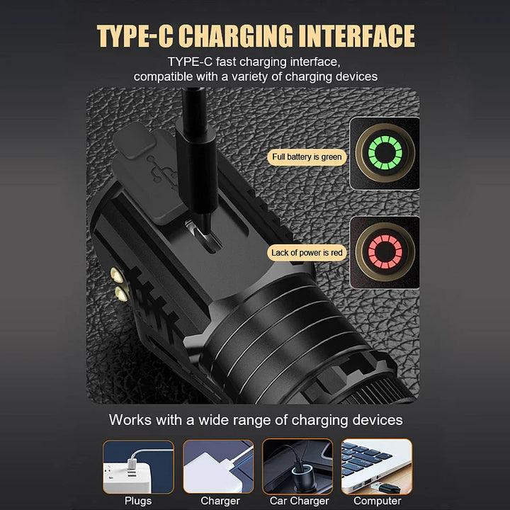 【Flashlights High Lumens】The Mini flashlight has a brightness of up to 2000 lumens and a range of up to 300 meters. The police flashlight generates less heat and consumes less power, greatly increasing the life of the flashlight batteries.