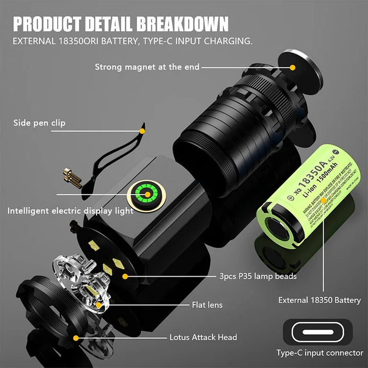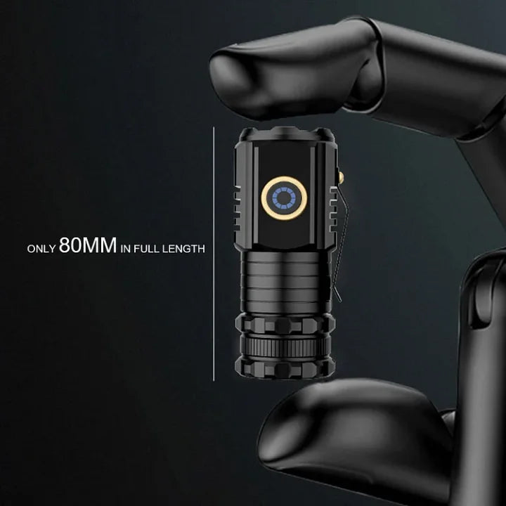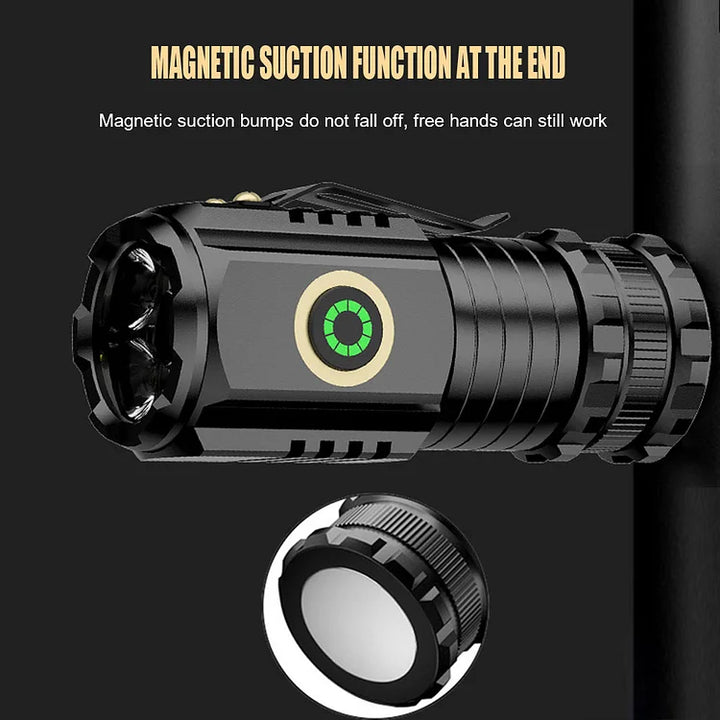 【Mini Flash Super Power Flashlight】The Flashlight 3-inch compact design allows you to put the mini flashlight in your pocket or carry it with you, taking up no extra space. The small flashlight's magnetic design on the end allows the flashlight to be placed on any metal surface.